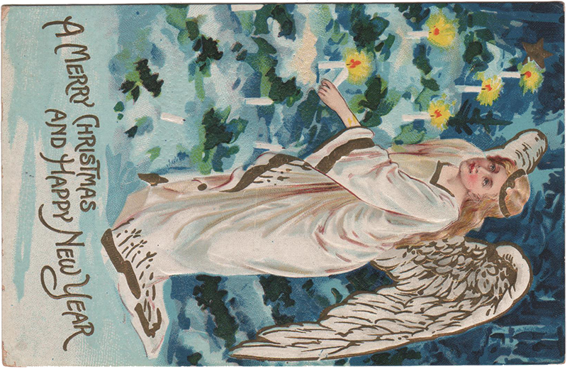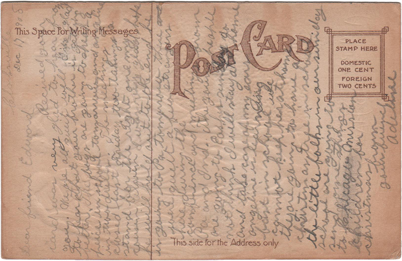 Received your card was very glad to hear from you. We are all quite well. I’m glad to hear that your brother is getting better. The boys are going to speak a piece in school tomorrow and Angeline[?] in two drills. The meetings closed last Friday two [taking?] a stand for the right one my cousin [Alvin?] I was very glad hope he will hold out to the end. he is going to Pa tomorrow there [quelt? quite?] a few strangers here during the conference and meeting from Pa and Ind. The young people are going to Easter sunday do not think I will stay at home and take care of my ears Angeline is learning fast in school we cannot keep her at home they are going to have a christmas tree in school. The little folks in our sunday school are going to send some things to Chicago Mission Children for Christmas from your friend