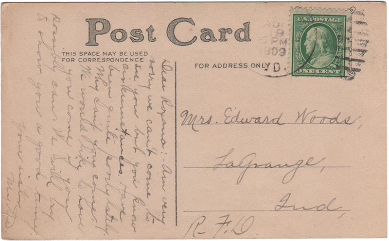 “Dear Roxana:— Am very sorry we can’t come to see you but you know circumstances. Have been quite poorly lately. Why can’t you come. We would like to have you come if you possibly can. We will try to show you a good time.