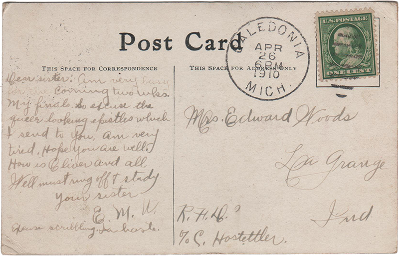 “Dear sister: Am very busy for the coming two wks. My finals. So excuse the queer looking epistles which I send to you. Am very tired. Hope you are well. How is Oliver and all. Well must ring off & study