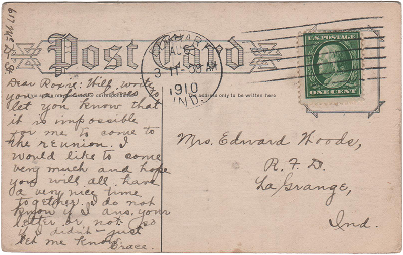 Dear Roxie: Will write you a few lines to let you know that it is impossible for me to come to the reunion. I would like to come very much and hope you will all have a very nice time together. I do not know if I ans. your letter or not. so if I didn’t — just let me know.