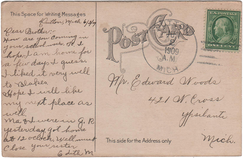 Ma & I were in G.R. yesterday. Got home at 12 oclock. Well must close. your sister