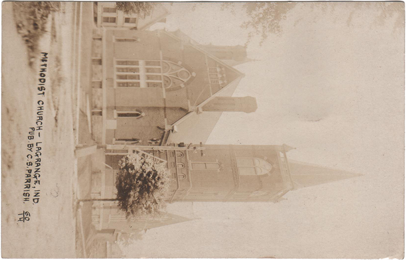 Methodist Church — LaGrange, Ind. Pub. by C.S. Parrish. 60/14LaGrange, Ind., 5 Oct 1910 Mr Edward Woods, Hudsonville, Michigan “Wednesday morn Ma is no better. Had a weak spell this morning. Ollie is well and pretty good natured. He is having a big time with Grandpa.”