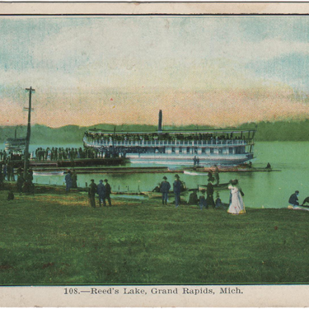 108.–Reed’s Lake, Grand Rapids, Mich.Caledonia, 3 Mar 1908 Edward Woods 713 W. Cross, Ypsilanti Michigan “Dear Brother:– Remember the day we spent here together. I failed in two of my exams. 2% lacked in one. From sister Edith.” Made expressly for S.H. Knox & Co.