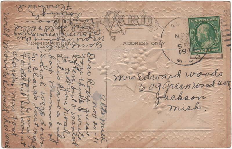 Dear Roxy— guess you think I write often, but I wanted to tell you Noah Lile’s have a baby boy. Mamma & Sarah were down to Clara’s last night, was going to Mrs. Ford’s but she was at Clara’s. Mrs. Ford will move to Lowell this week.