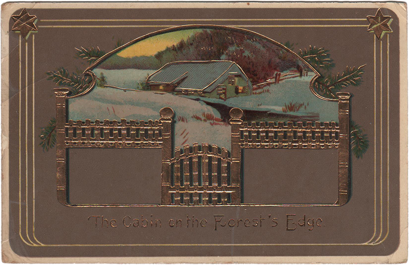 The Cabin on the Forest’s EdgeTopeka, Ind., 2 Mar 1910 Mrs. Edward Woods, 404 Ballard St., Ypsilanti, Mich. “Dear Roxy:— We are all quite well. Guess this will have to answer for a letter untill I am not so busy How are you any way? Come and see us. Yours truly C.J. & Myrtle”
